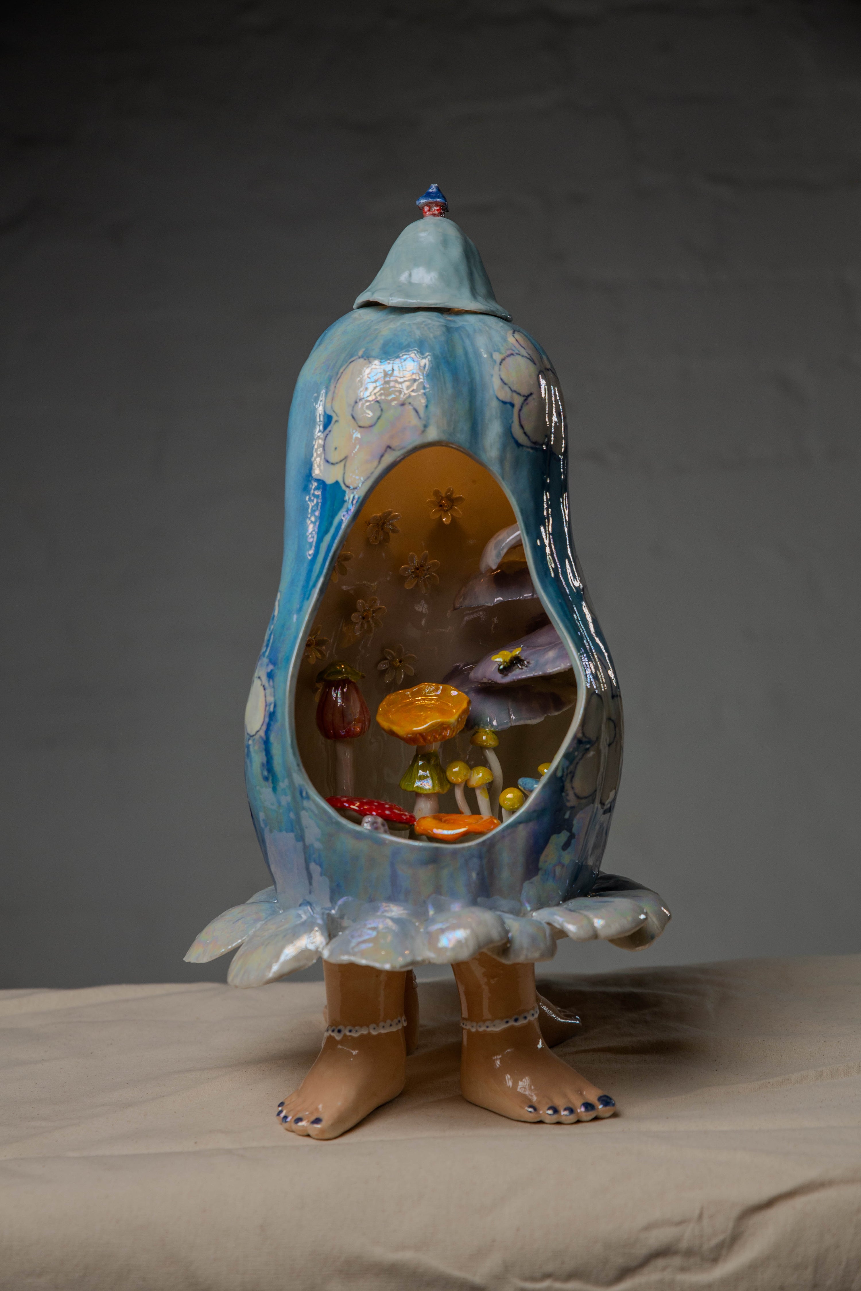 Drawing inspiration from her experiences as an only child, Yang imbues her work with a sense of whimsy and childlike wonder. She often characterizes her creations with faces and legs, as though imbuing them with personalities and identities. Through her artistic process, she envisions herself crafting new friends with whom she can dance and celebrate life.
